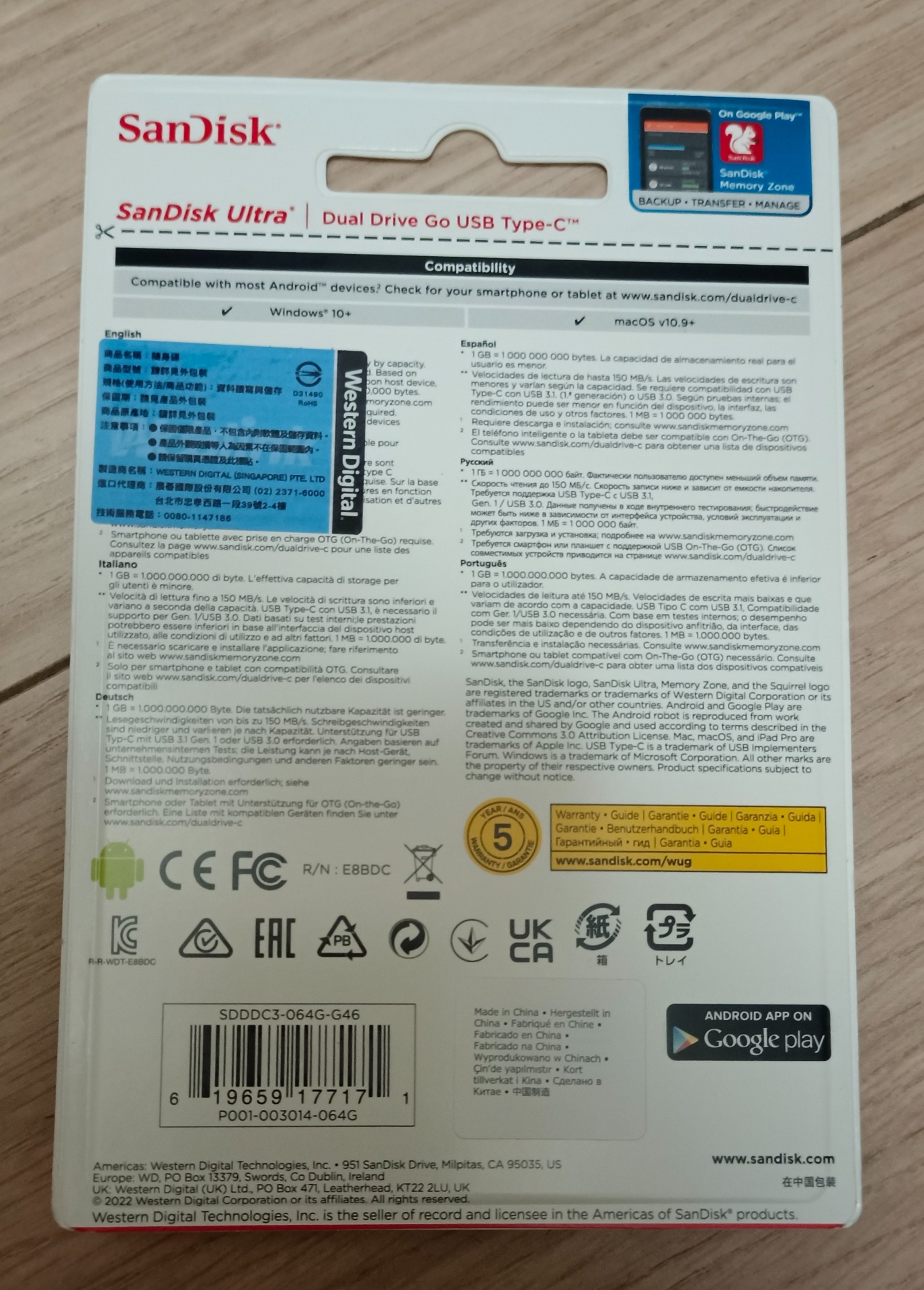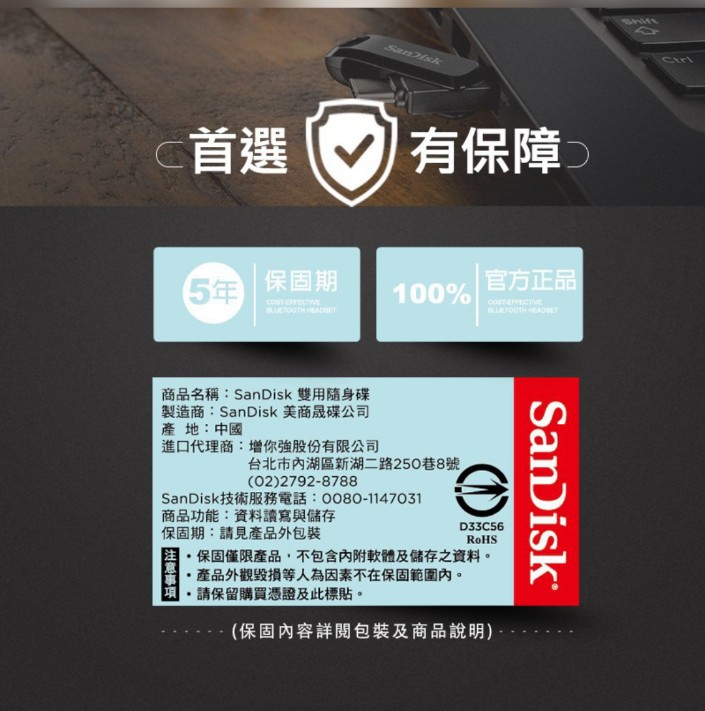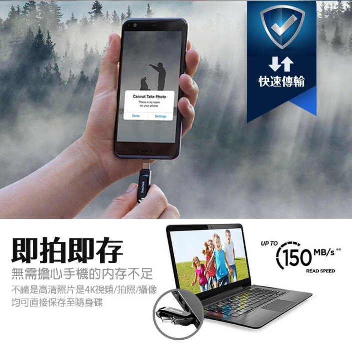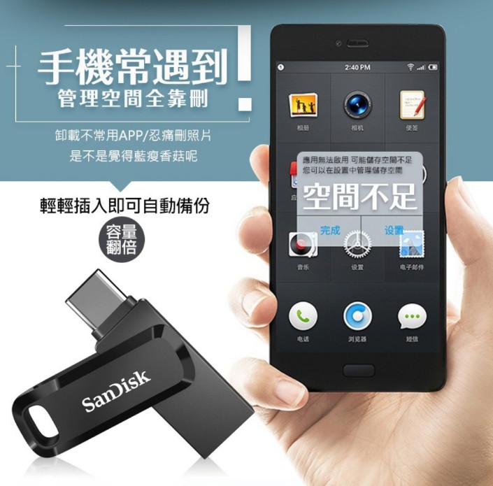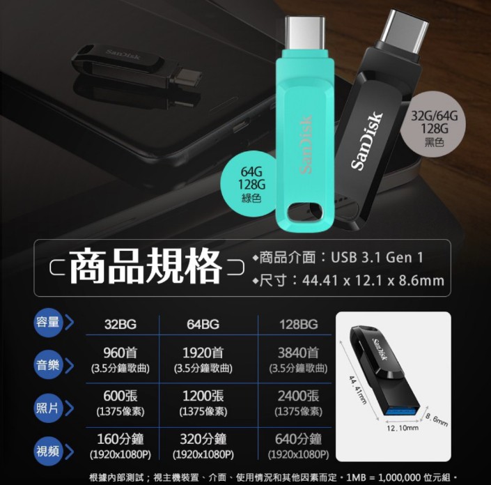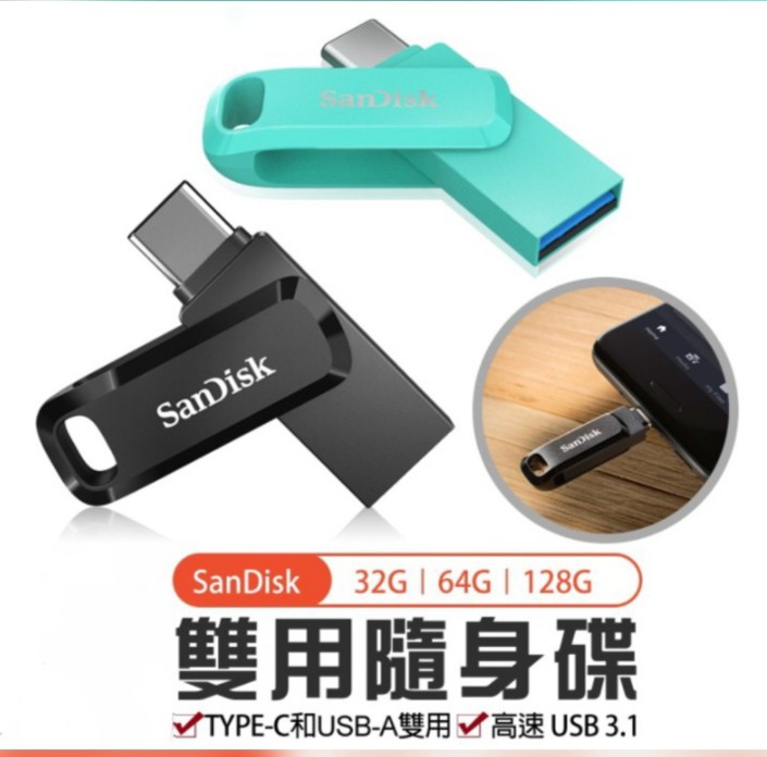 SanDisk雙用隨身碟USB Type-C™和Type-A裝置的二合一隨身碟